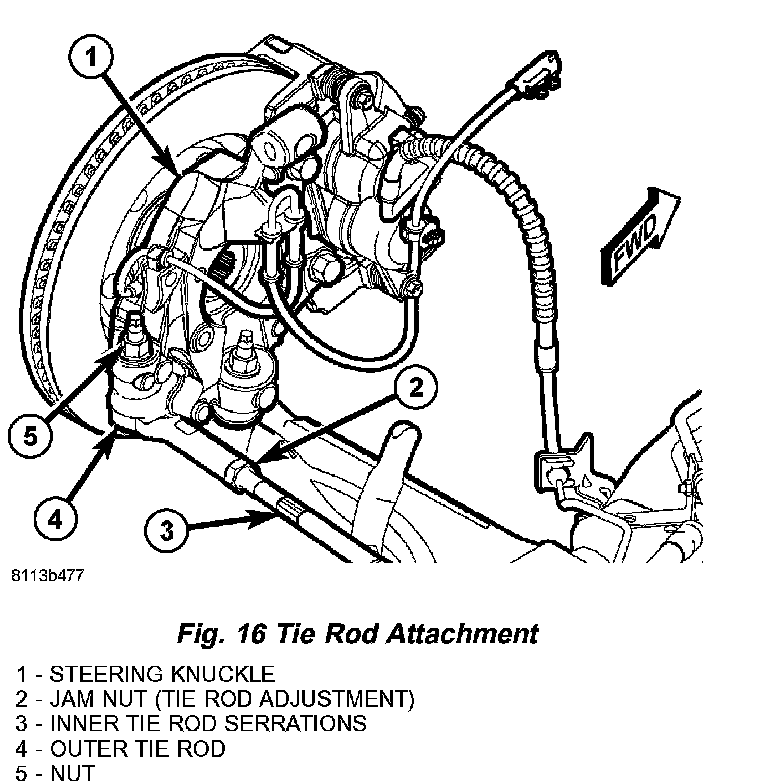 1. Loosen jam nut at inner-to-outer tie rod connection (Fig. 16).