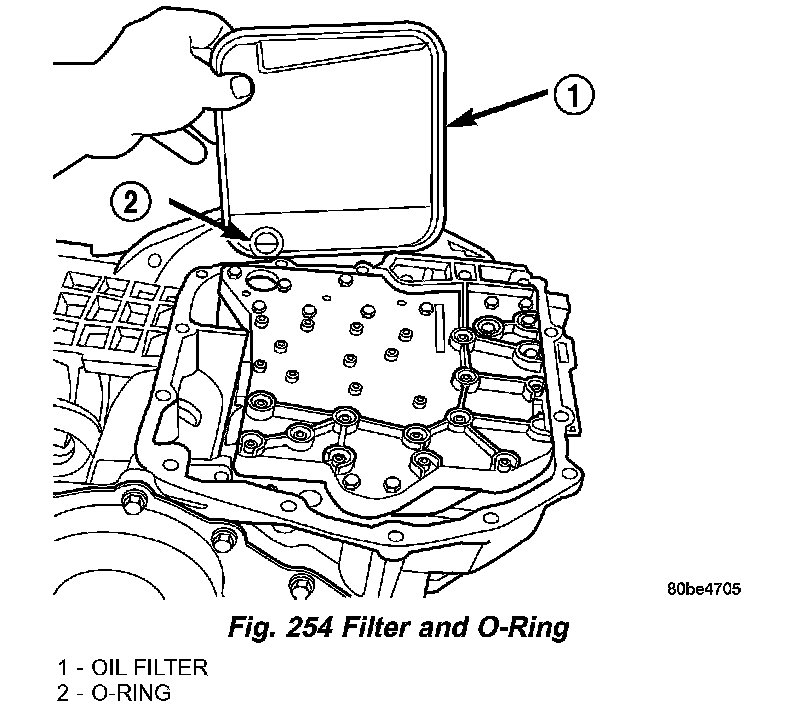 4. Install a new filter and O-ring on bottom of the valve body (Fig. 254).