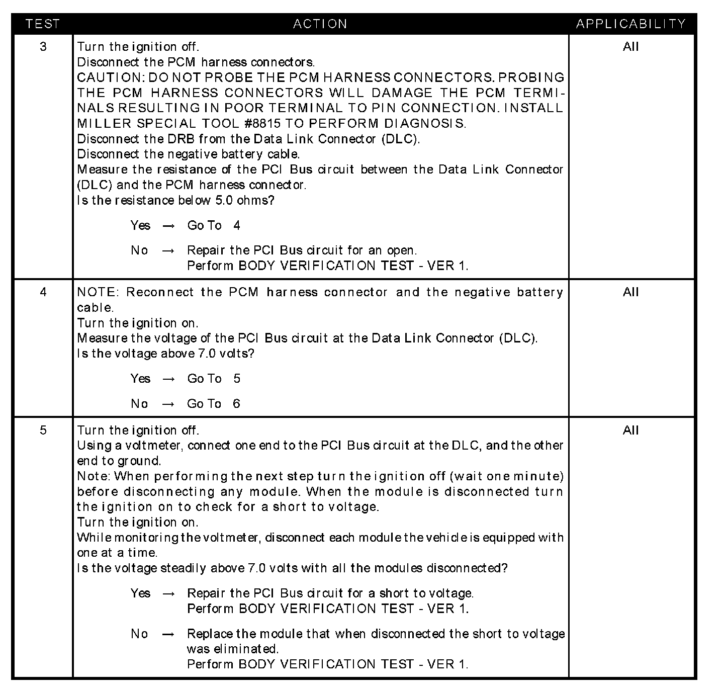 - Open PCI bus circuit at the data link connector (DLC)