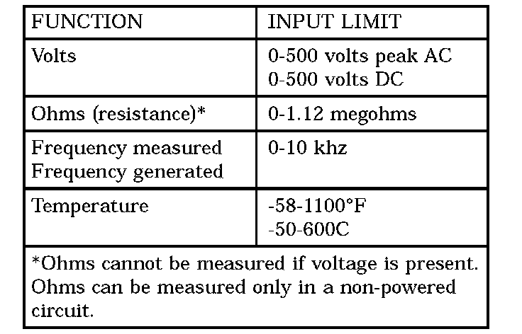 DRBIII SAFETY INFORMATIONWARNING: EXCEEDING THE LIMITS OF THE DRBIII MULTIMETER IS DANGEROUS. IT CAN EXPOSE YOU TO SERIOUS OR POSSIBLY FATAL INJURY. CAREFULLY READ AND UNDERSTAND THE CAUTIONS AND THE SPECIFICATION LIMITS.