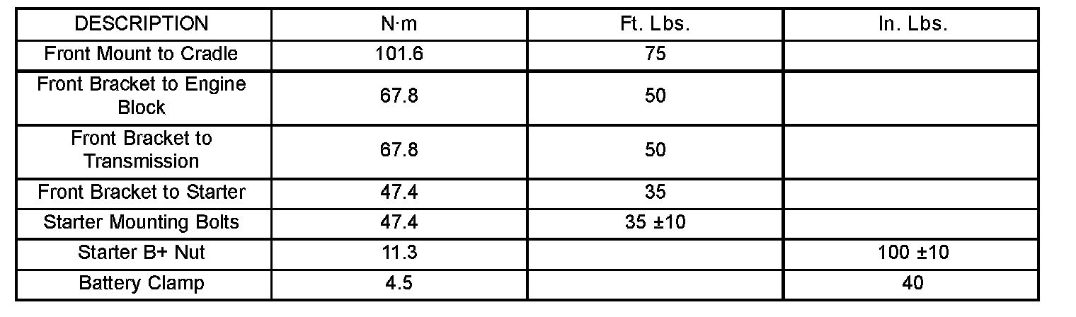 Starting System: Specifications