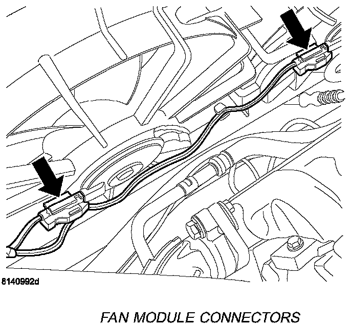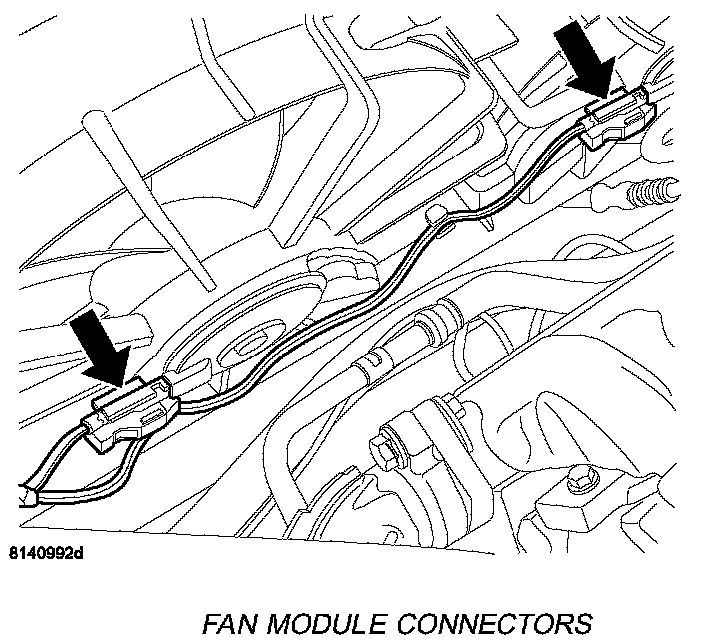 7. Remove 2 fasteners and remove fan module from vehicle.