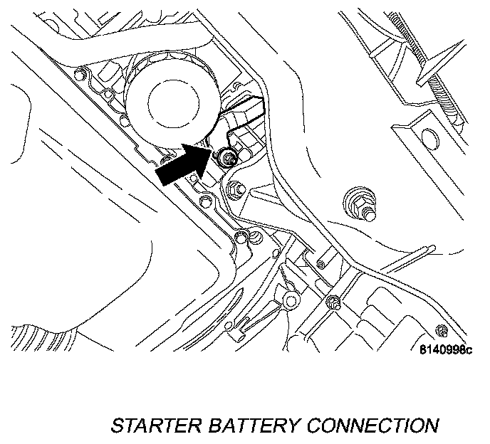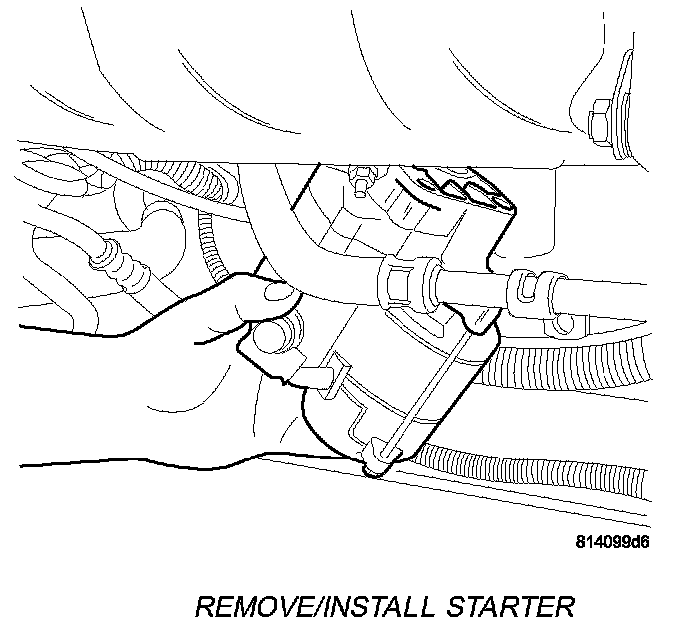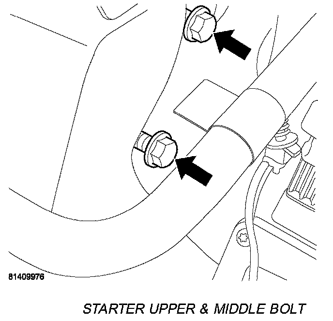 7. Loose install the lower starter bolt, tighten 3 bolts to 47 N.m (35 ft. lbs.).