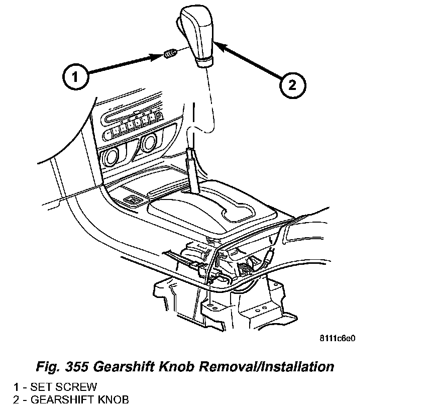 ADJUSTMENT - INTERLOCK CABLE1. Remove the gearshift knob (Fig. 355).