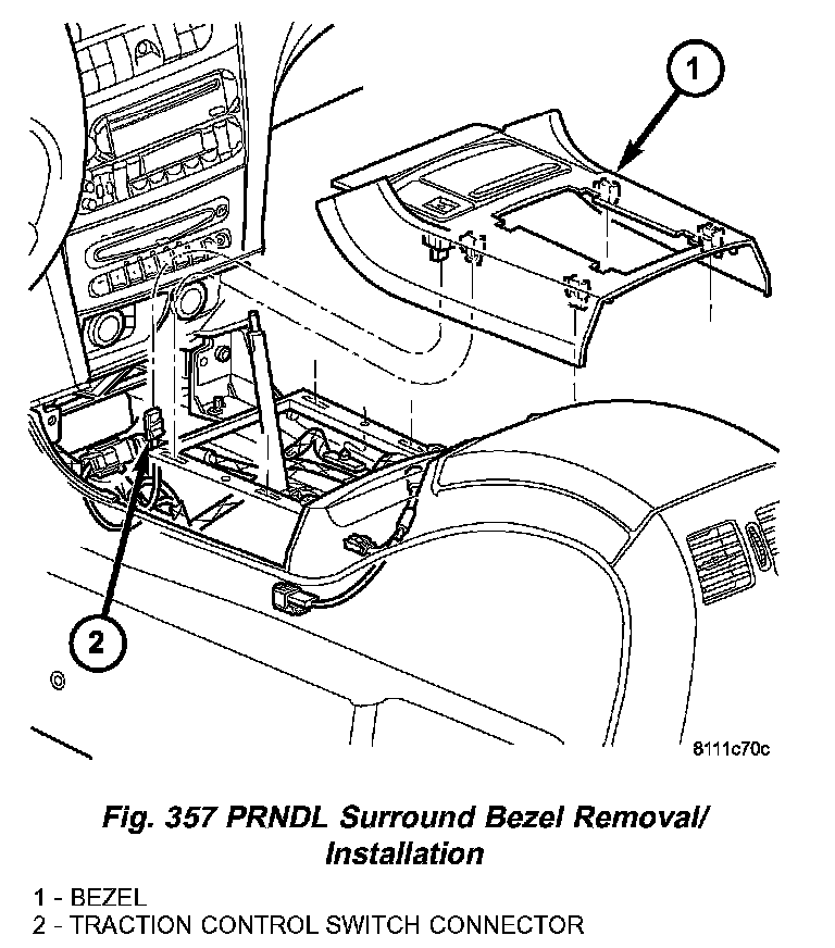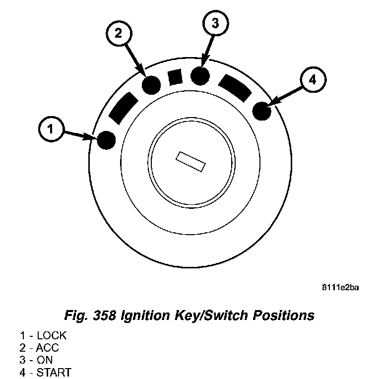 4. Move the gear shifter to PARK and the ignition key to the LOCK position (Fig. 358).