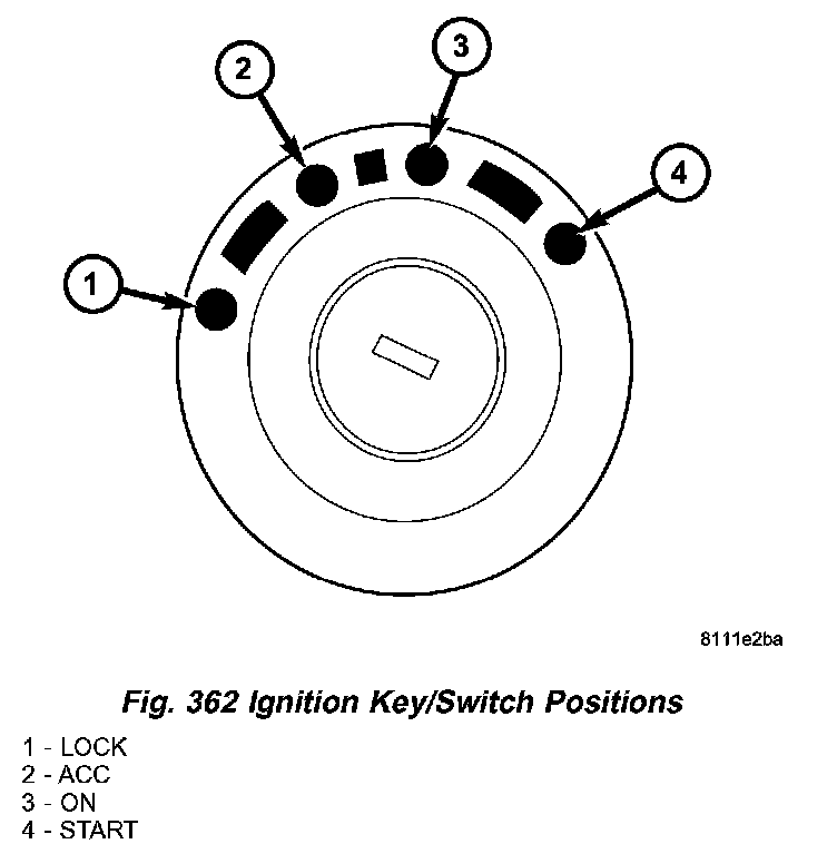 Refer to the chart that expected shifter response, depending on ignition key/switch (Fig. 362) and brake pedal positions.