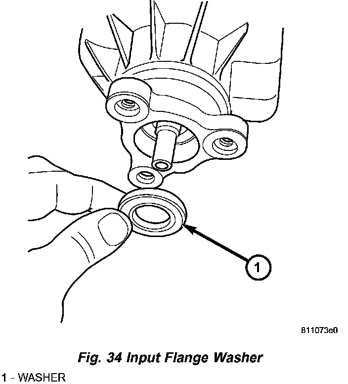 13. Install input flange washer and nut (Fig. 34) (Fig. 35).