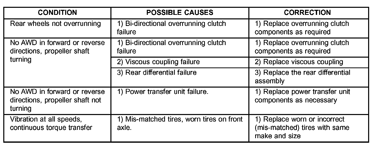 Driveline module operation requires relatively straight-forward diagnosis. Refer to the chart: