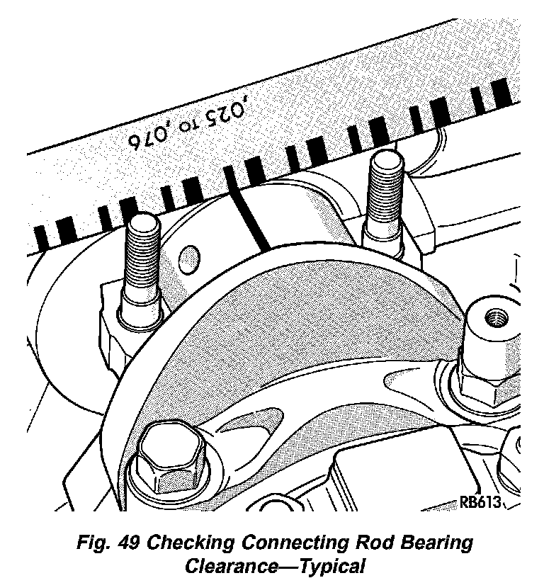 1. For measuring Main Bearing Clearance and Connecting Rod Bearing Clearance use plastigage (Fig. 49). Refer to Specifications for bearing clearance specifications. Specifications
