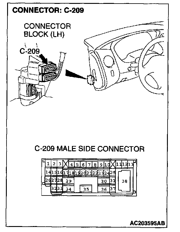 STEP 6. Check stoplight switch connector C-03 and intermediate connector C-209 for loose, corroded or damaged terminals, or terminals pushed back in the connector.