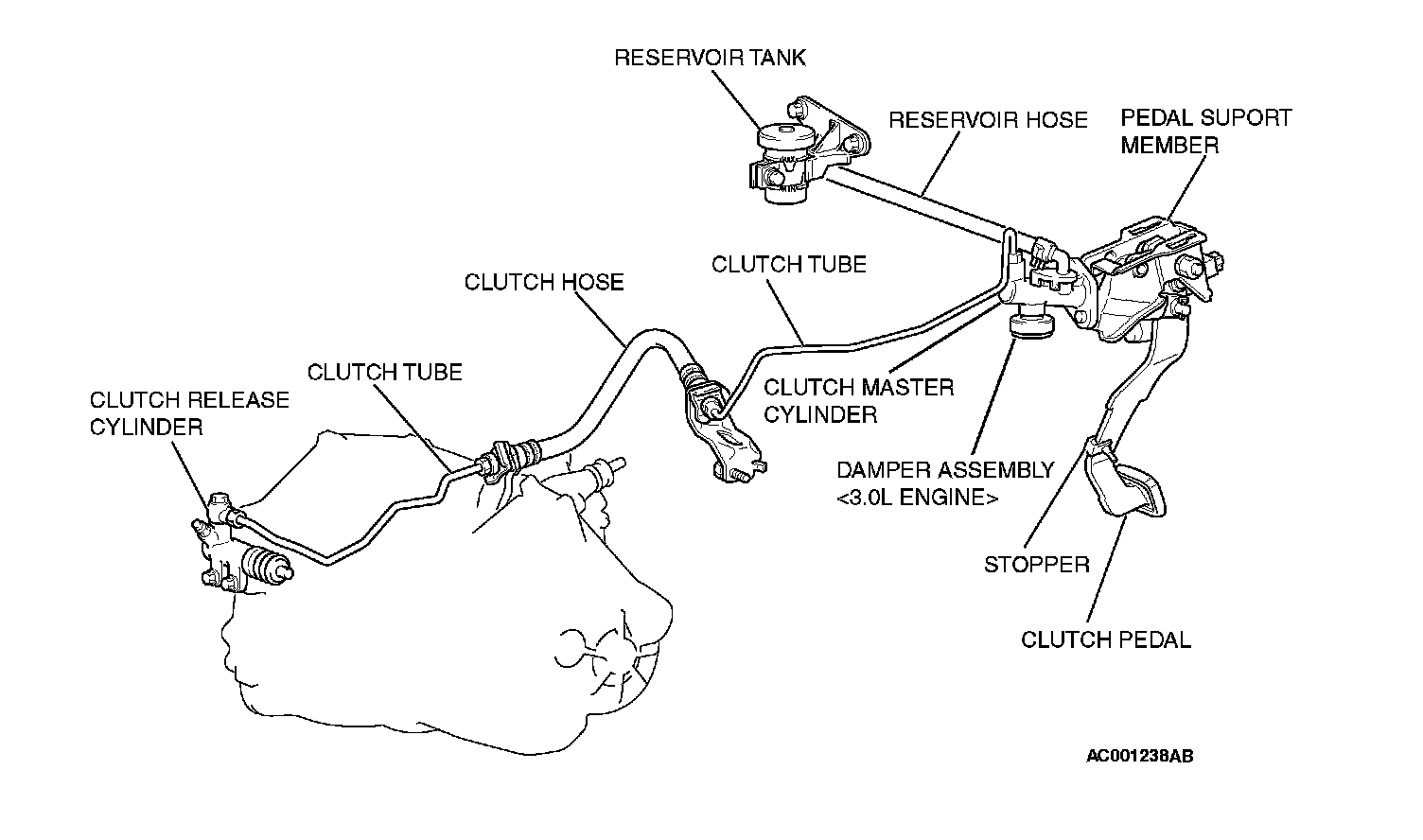 The clutch is a dry single-disc, diaphragm type; hydraulic pressure is used for the clutch control.