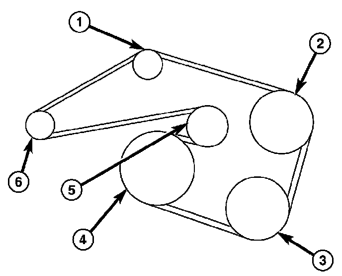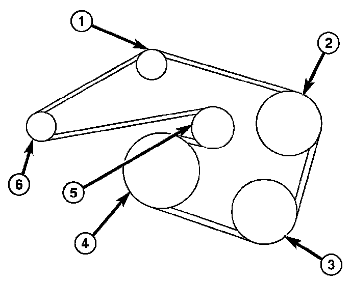 CAUTION: When installing the serpentine accessory drive belt, the belt MUST be routed correctly. If not, the engine may overheat due to the water pump rotating in the wrong direction.