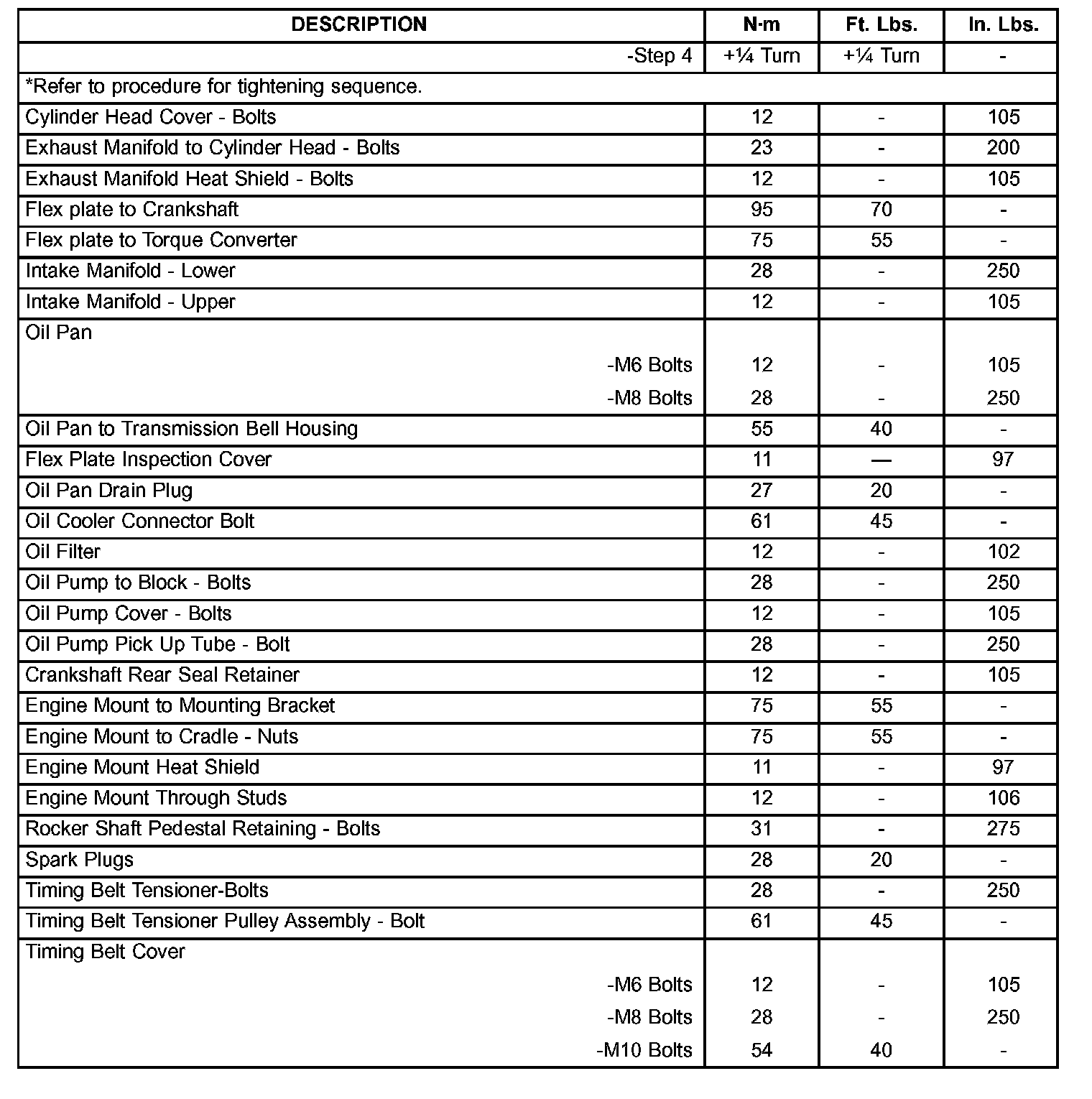 Engine Torque Specifications
