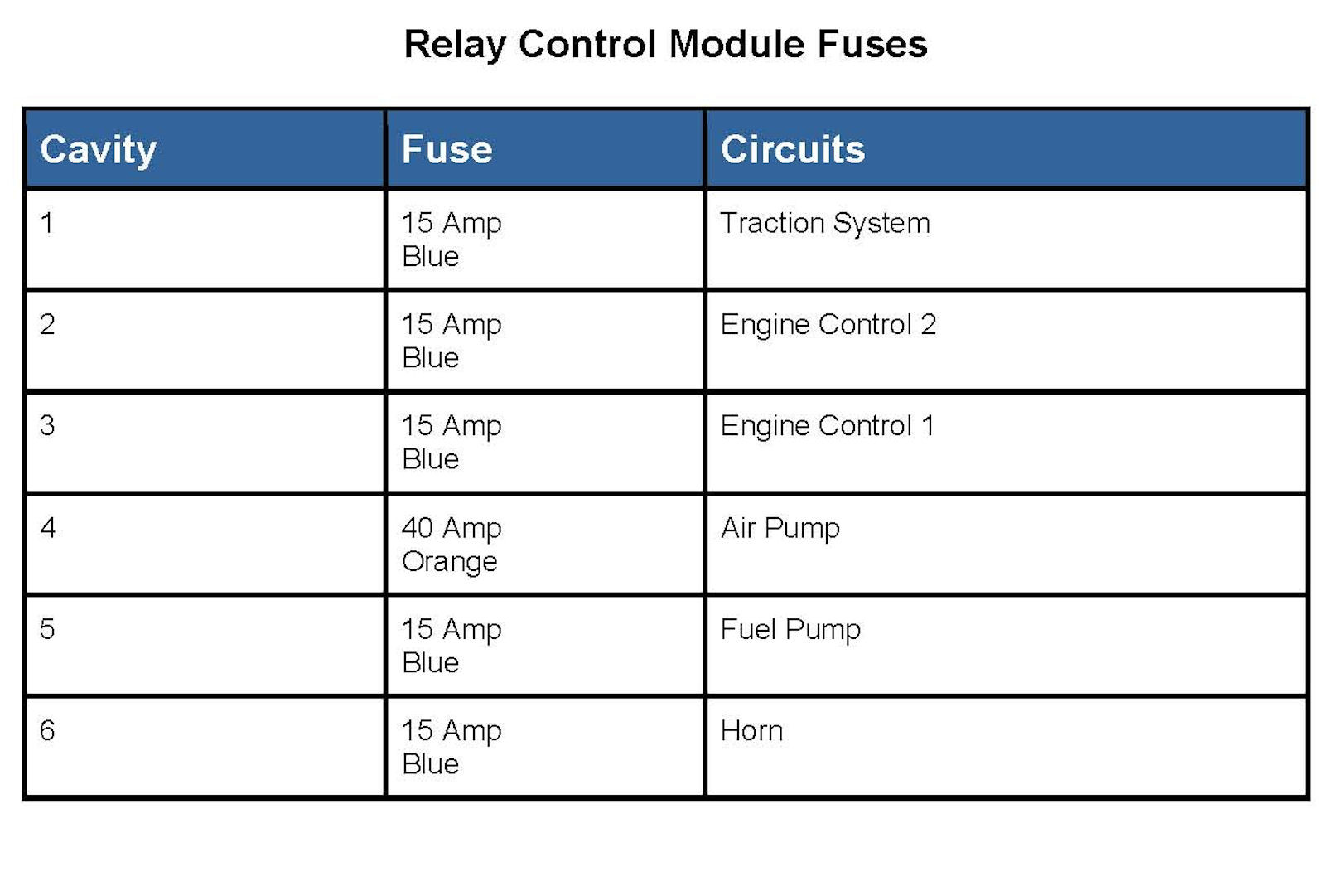 Relay Control Module Fuses