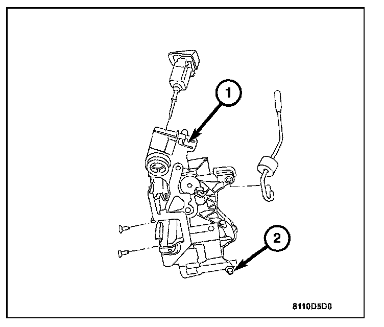 The Driver Cylinder Lock Switch (1) is an integral part of the Driver Door Lock Actuator assembly and cannot be adjusted or repaired. If faulty, worn, or damaged, the entire assembly must be replaced.