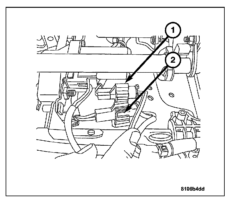 4. Disconnect the power seat switch harness connectors (1) and (2).