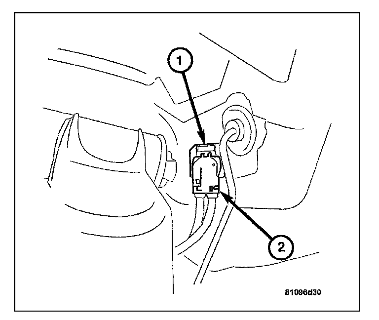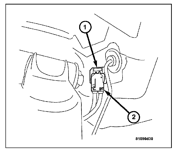 1. Connect the wheel speed sensor / brake wear indicator wire harness connector (2) to the body mount connector (1).