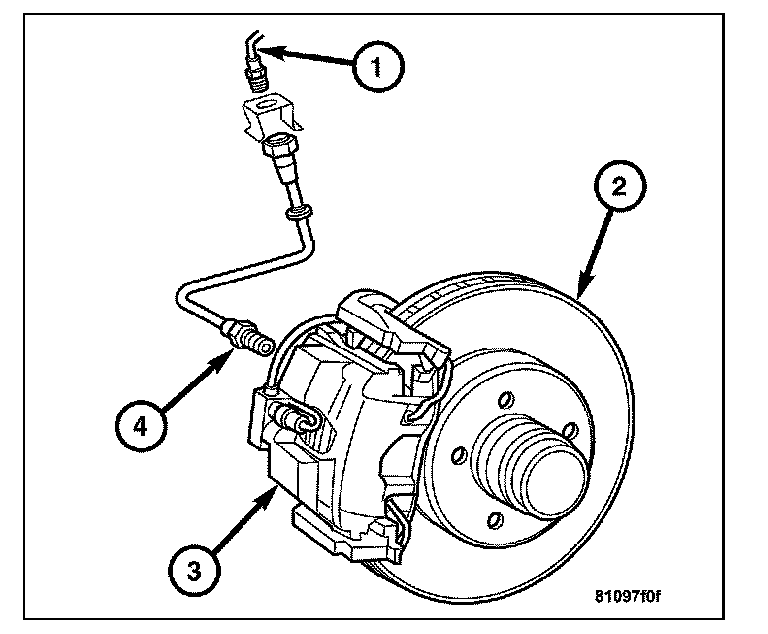 10. Remove the brake hose (4) from the caliper (3).