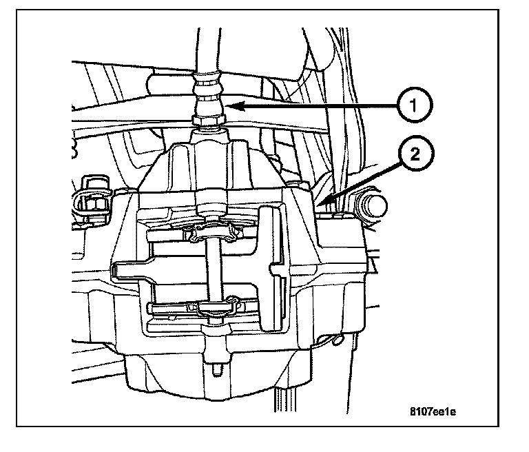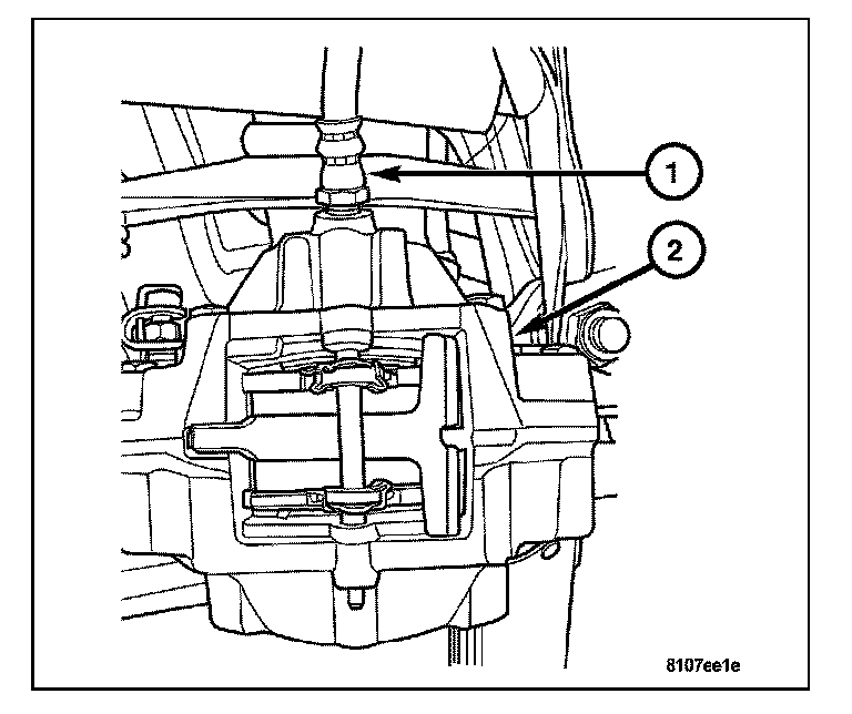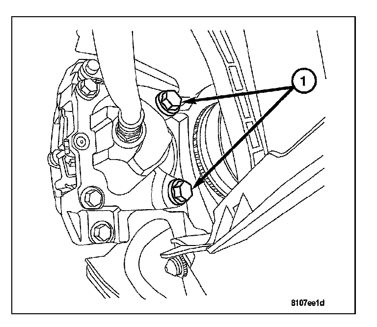 4. Remove the caliper mounting bolts (1) and remove the caliper from the knuckle.