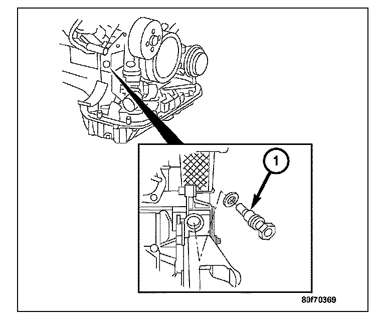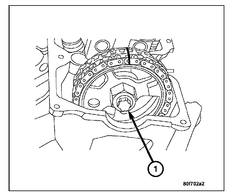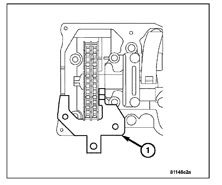 9. Install the timing chain tensioner (1). Tighten the timing chain tensioner to 80 Nm (60 ft. lbs.).