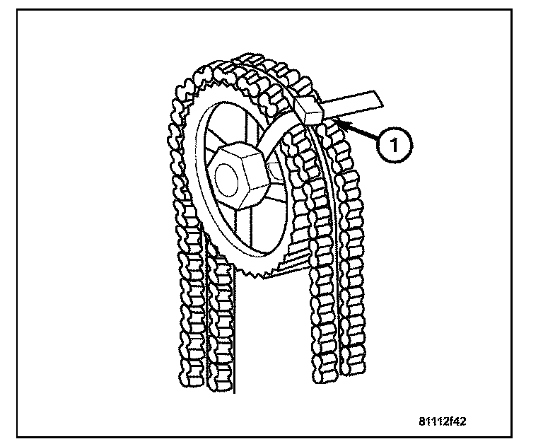 13. Use a cable tie (1) to secure the timing chain to the right hand camshaft sprocket.