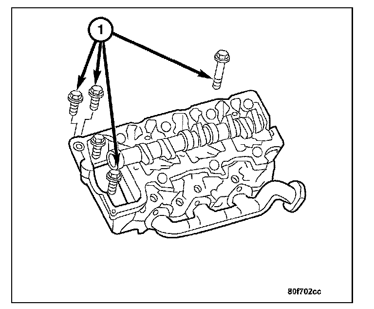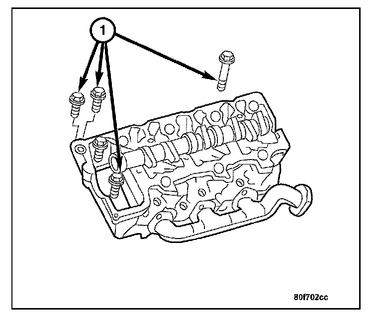 2. Install, but do not tighten the cylinder head bolts (1).