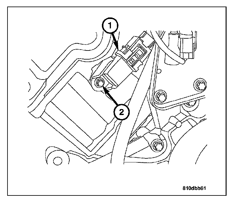 5. Disconnect the camshaft position sensor harness connector (1) and remove the bolt (2) and the sensor. (right side only).