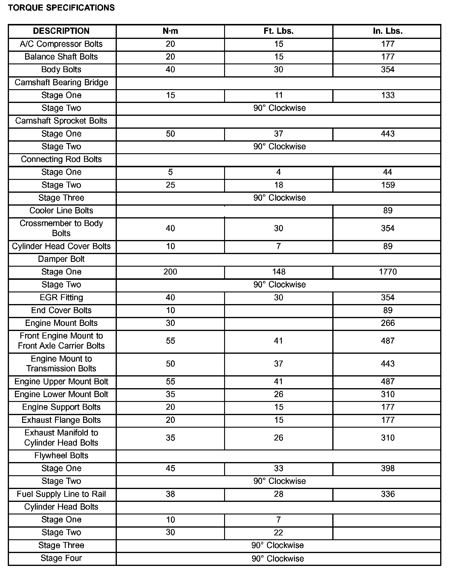 Engine Torque Specifications