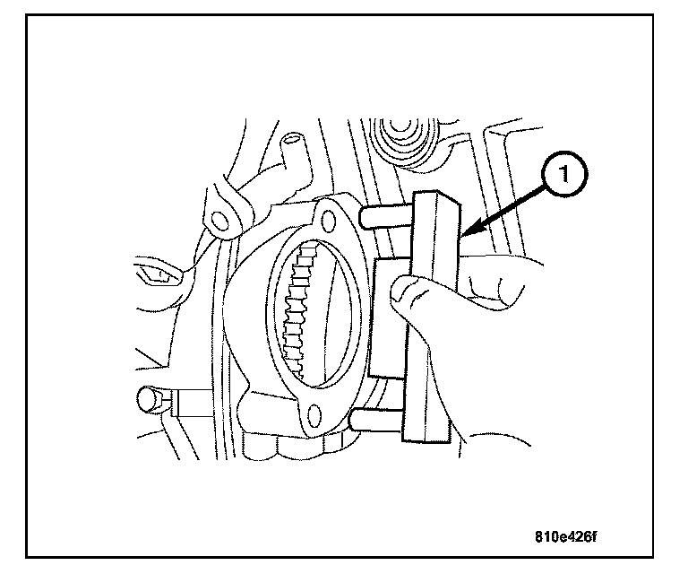 4. Using Special Tool 9102 Flywheel Locking Tool (1), lock the flywheel.