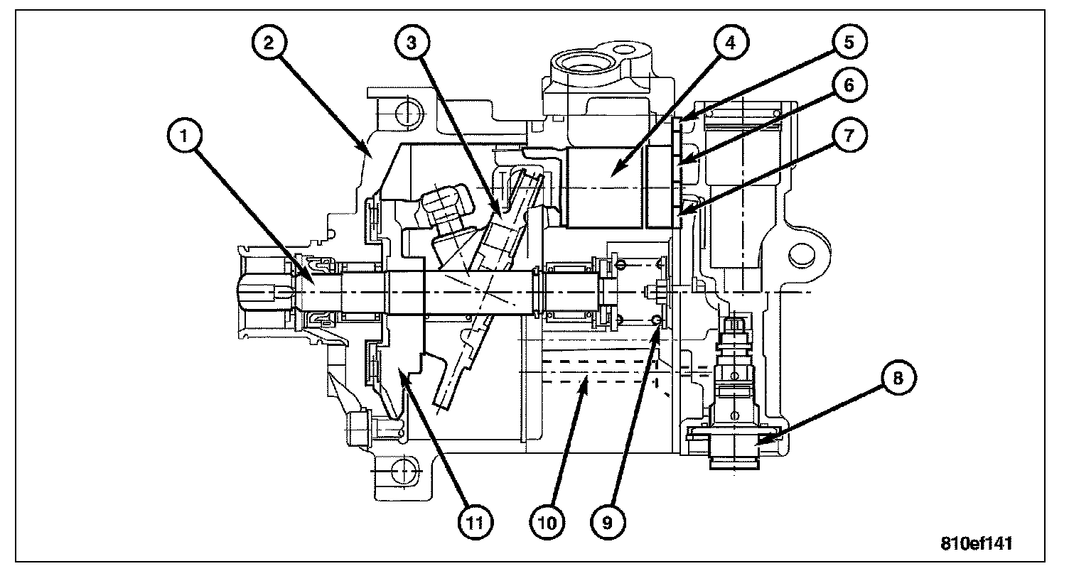 After the Electromagnetic Clutch has produced the frictional connection between the engine and the compressor, the drive shaft (1) drives the swash plate (3). The rotation of the inclined swash plate (3) causes the pistons (4) to move in strokes. During the intake stroke, refrigerant vapor is sucked in via the inlet valve (6). If the piston (4) moves in the counter direction, it delivers the refrigerant vapor via the pressure control valve (7), with the vapor being compressed and heating up, into the refrigerant line to the condenser.