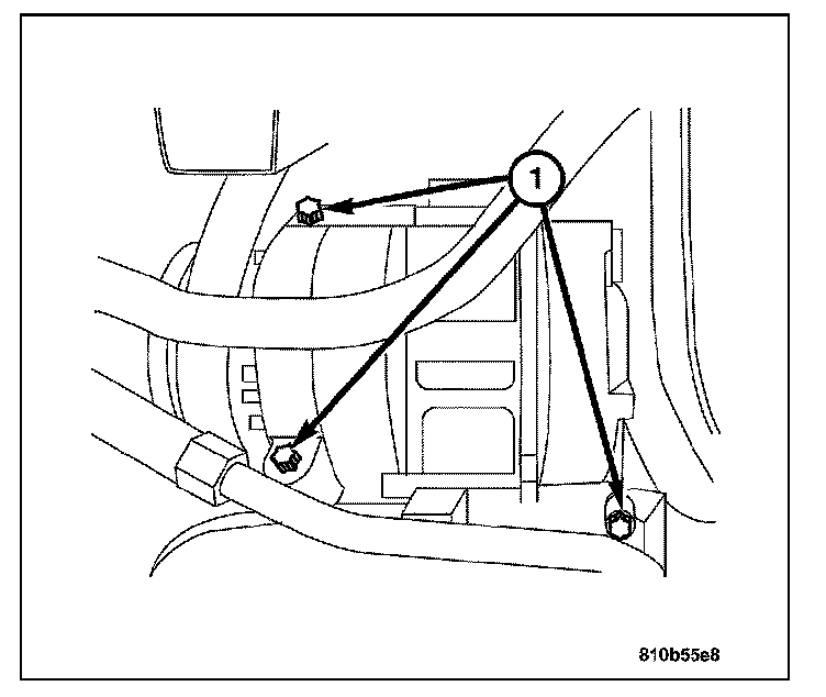 6. Remove the three compressor bolts (1) attaching it to the engine block.
