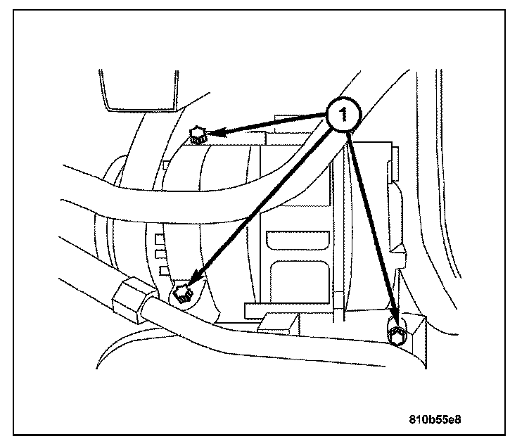 6. Remove the A/C compressor bolts (1).
