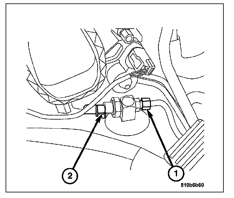 1. Install the A/C pressure transducer to the receiver/ dryer (1).
