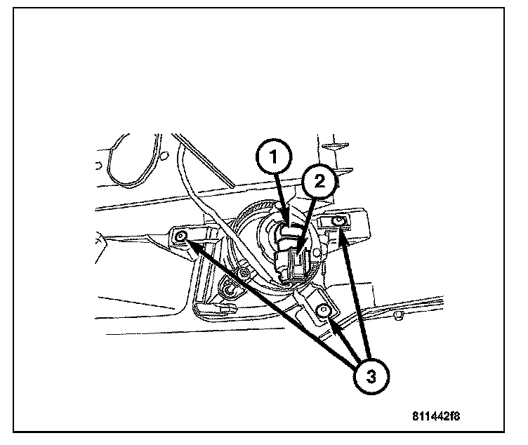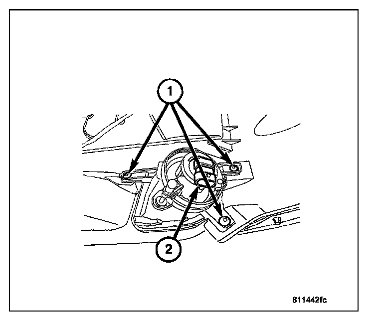 4. Disconnect the fog lamp harness connector (2) from the fog lamp bulb (1).