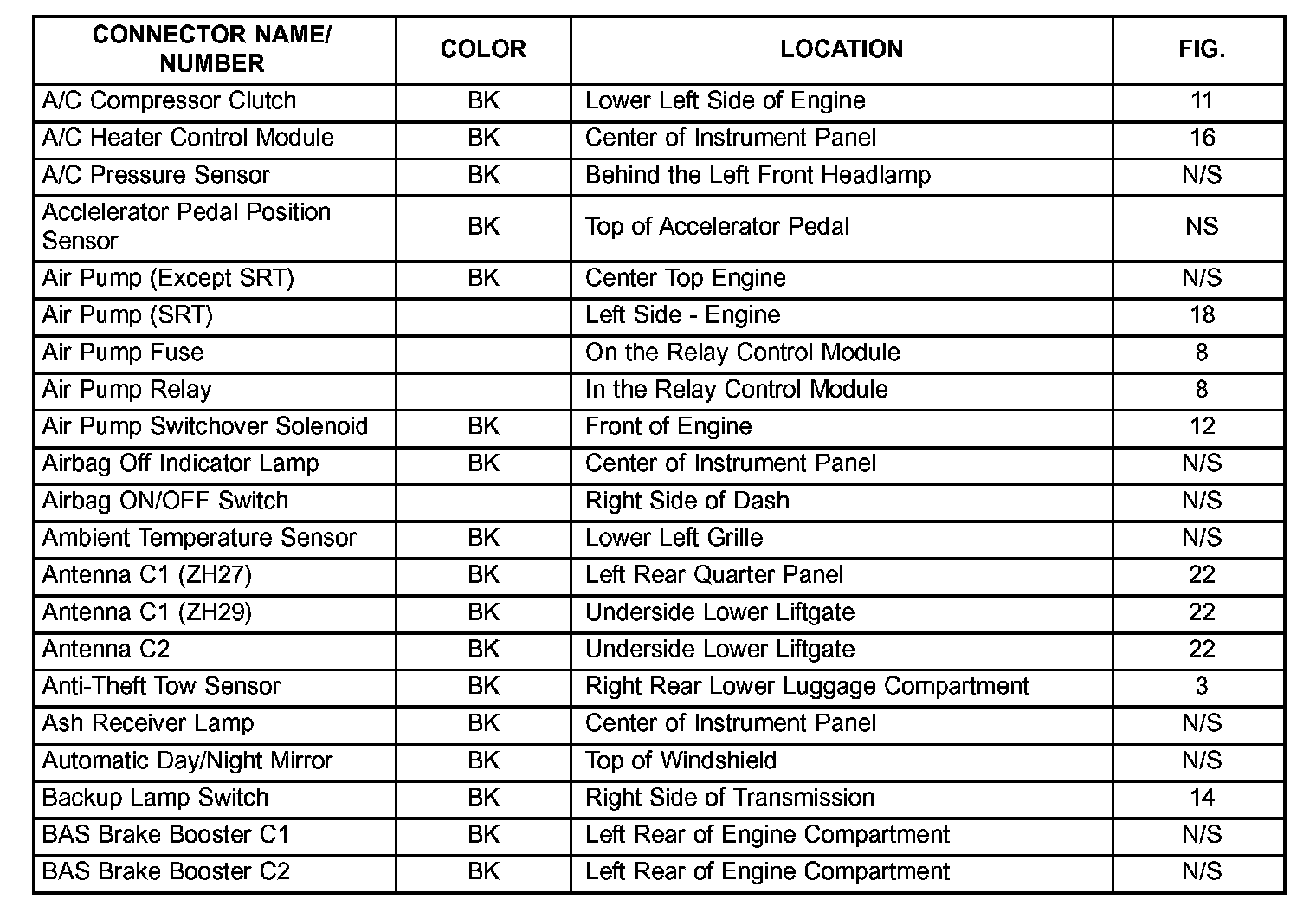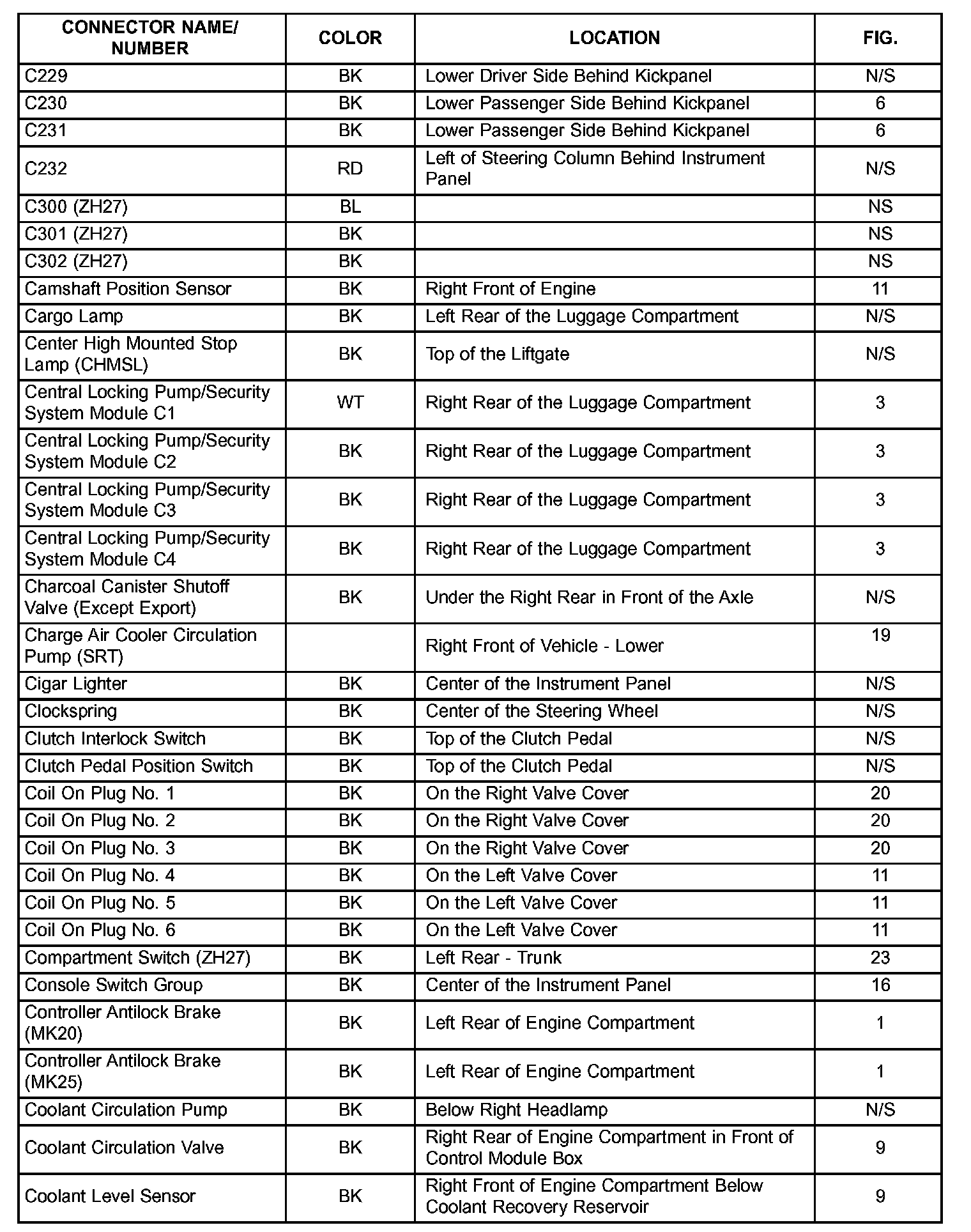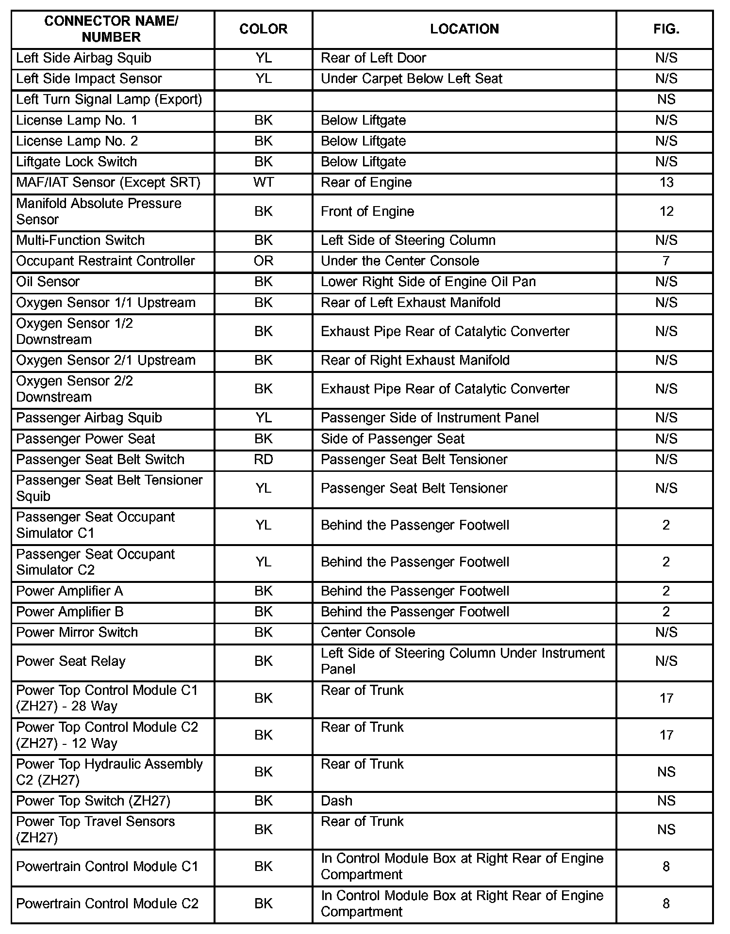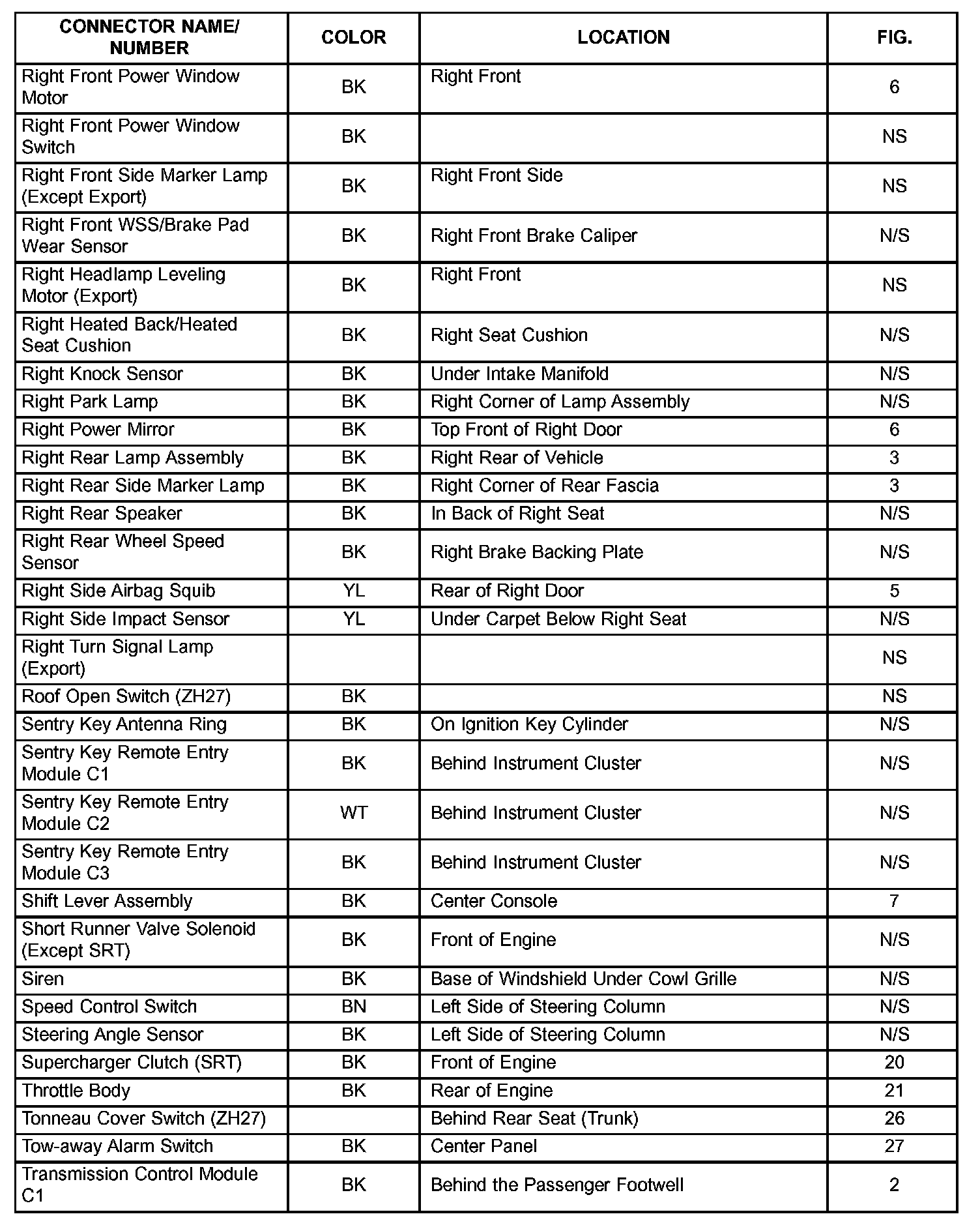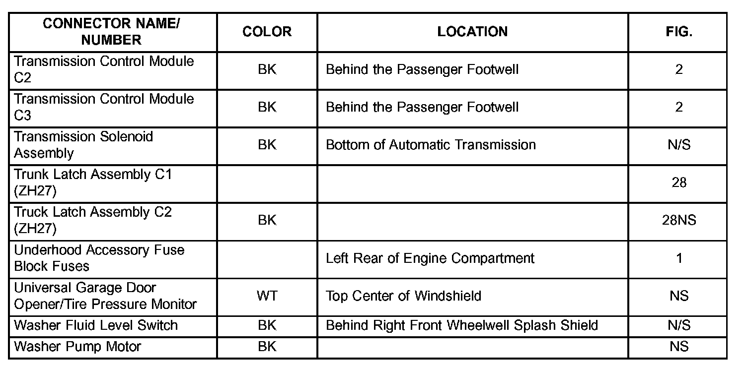If a link on the index chart to a figure is not provided, that means that the connector and/or figure in question does NOT apply to the vehicle model selected.