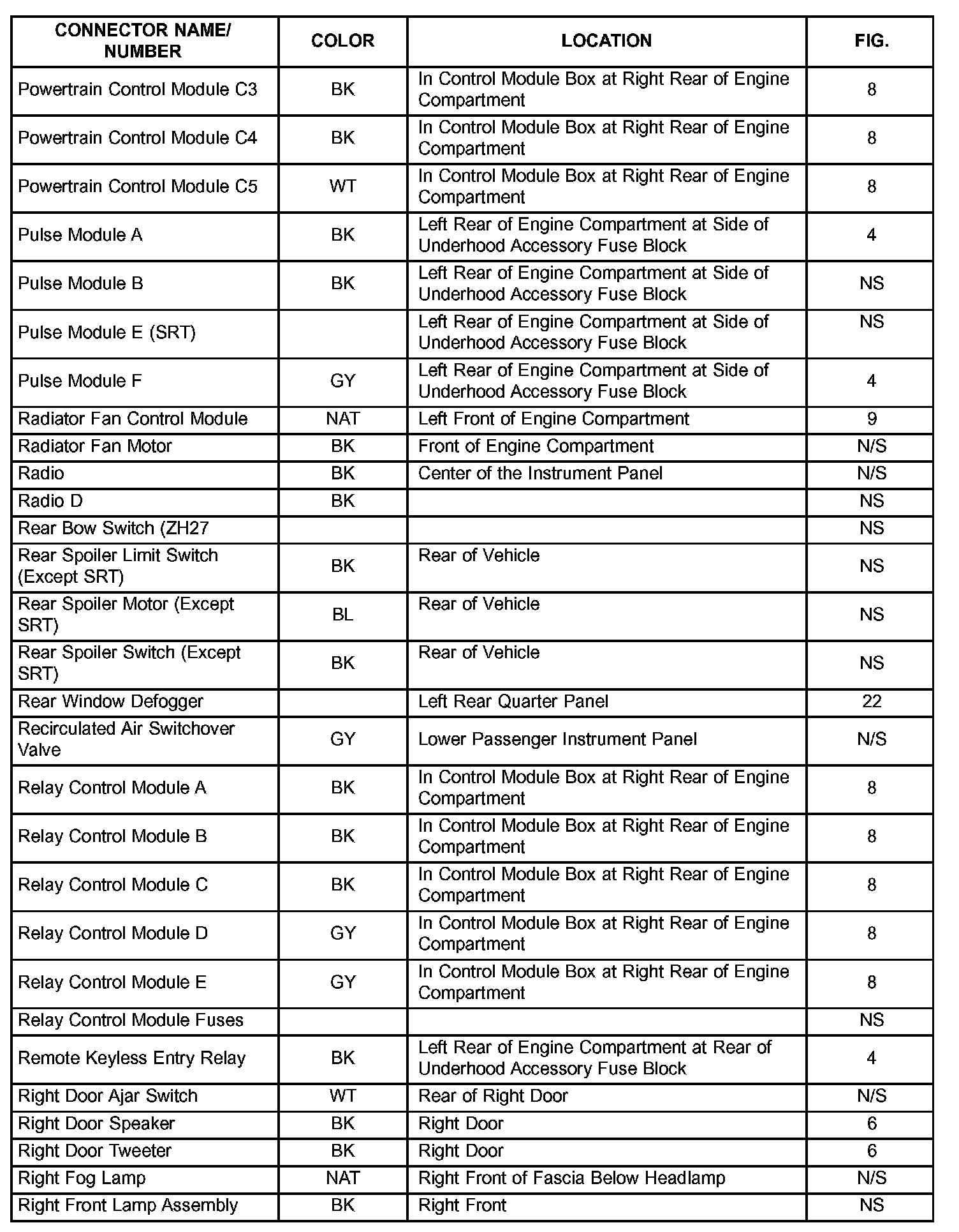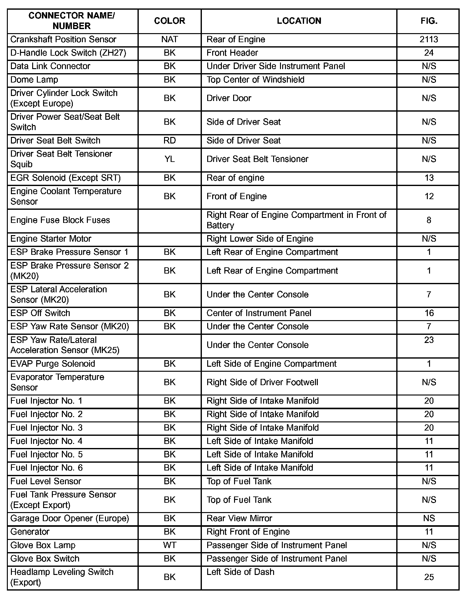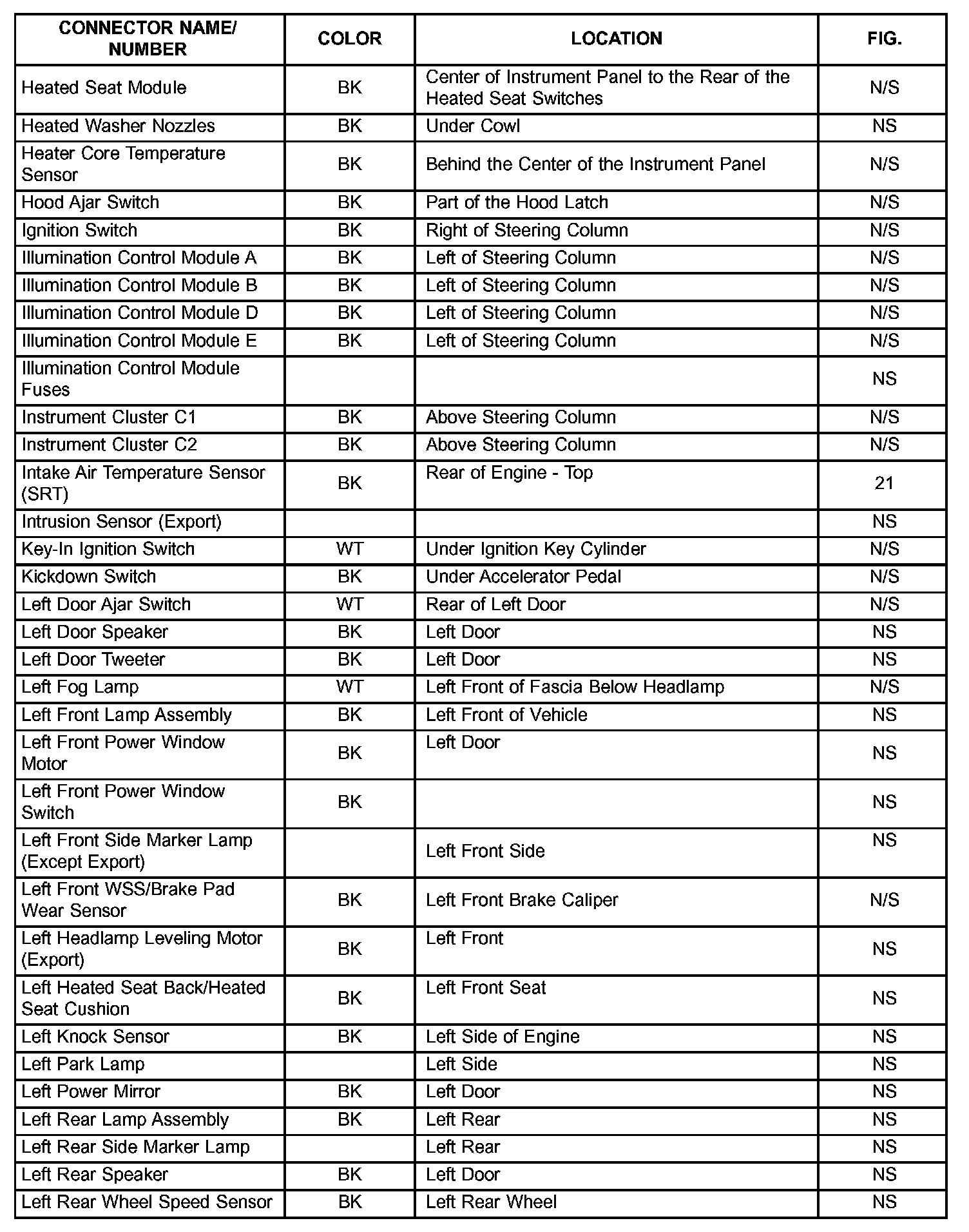 The abbreviation N/S means Not Shown in the illustrations.