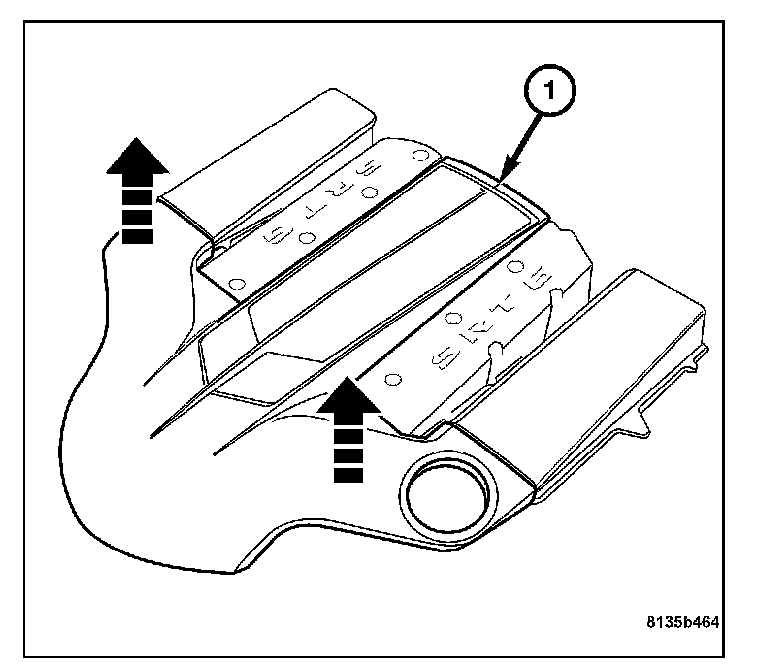 1. Remove the engine cover (1). Grasp both corners of the engine cover and pull up firmly.