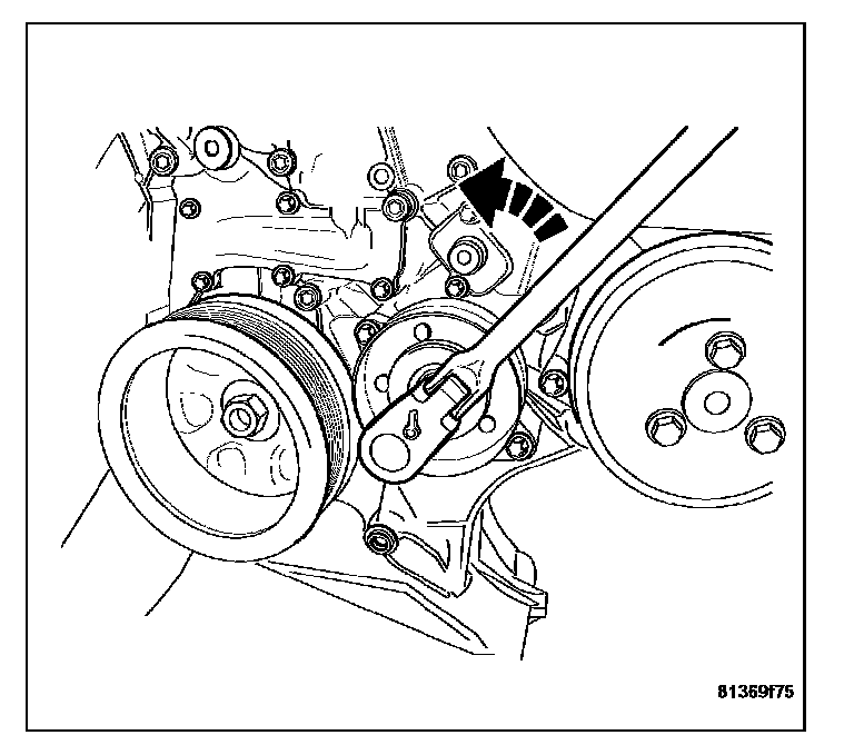 2. Rotate the belt tensioner counterclockwise and release the tension on the accessory drive belt.