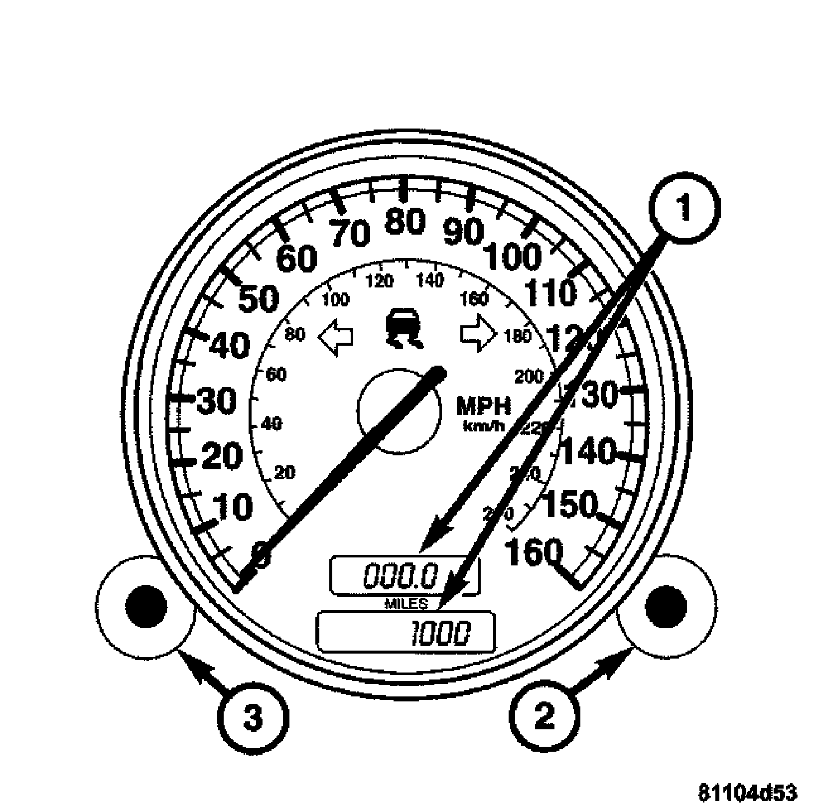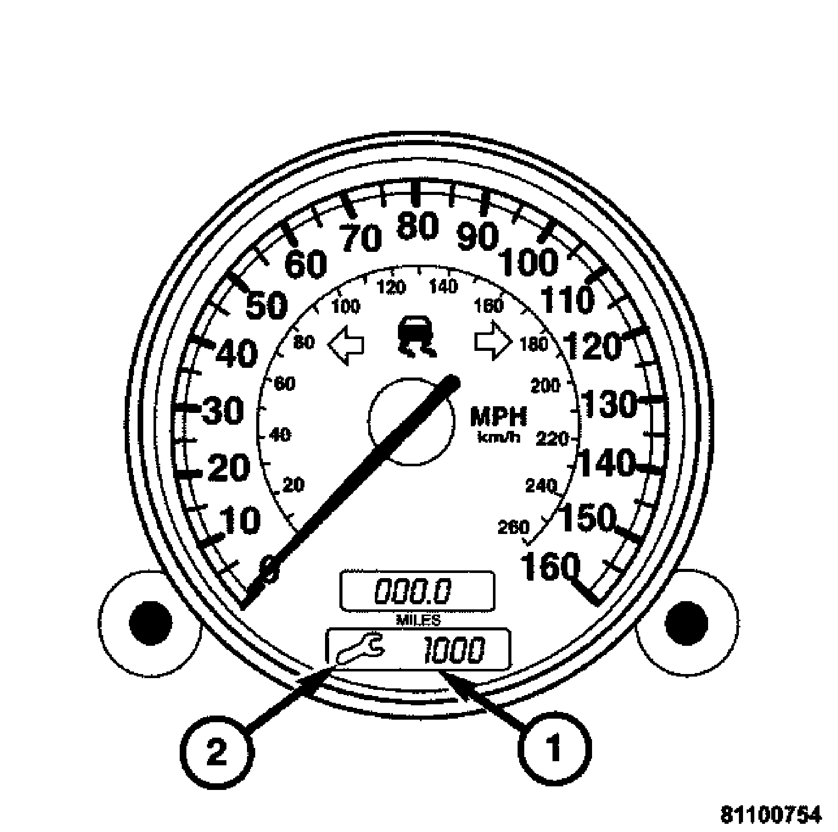 1. Automatically when the odometer (1) is reset to 0 within the first 155 miles. (The FSS maintenance indicator is reset to the values set at the factory).