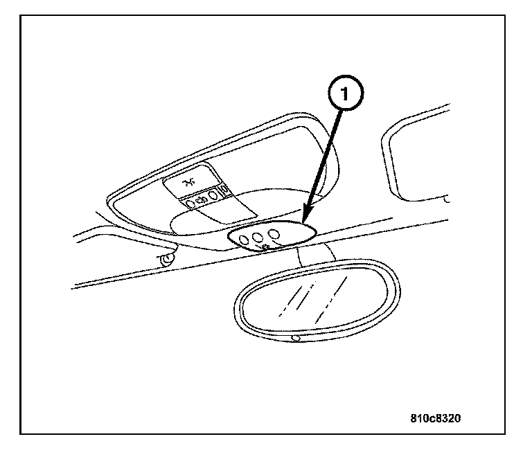 1. Install the Universal Garage Door Opener/Tire Pressure Monitor (1) by snapping it into the headliner.