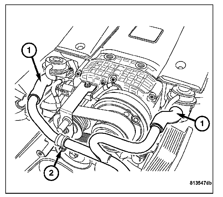 3. Disconnect the air pump tubes (1) from the air pump and solenoids.