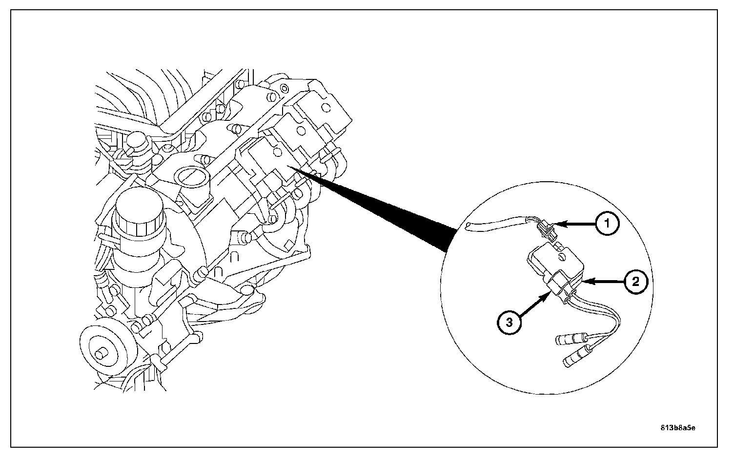 The Camshaft Position Sensor is a hall effect type sensor (3 wire). The Camshaft Sensor is used to identify cylinder #1 compression stroke. The Camshaft Position Sensor is mounted on the right front cylinder head.