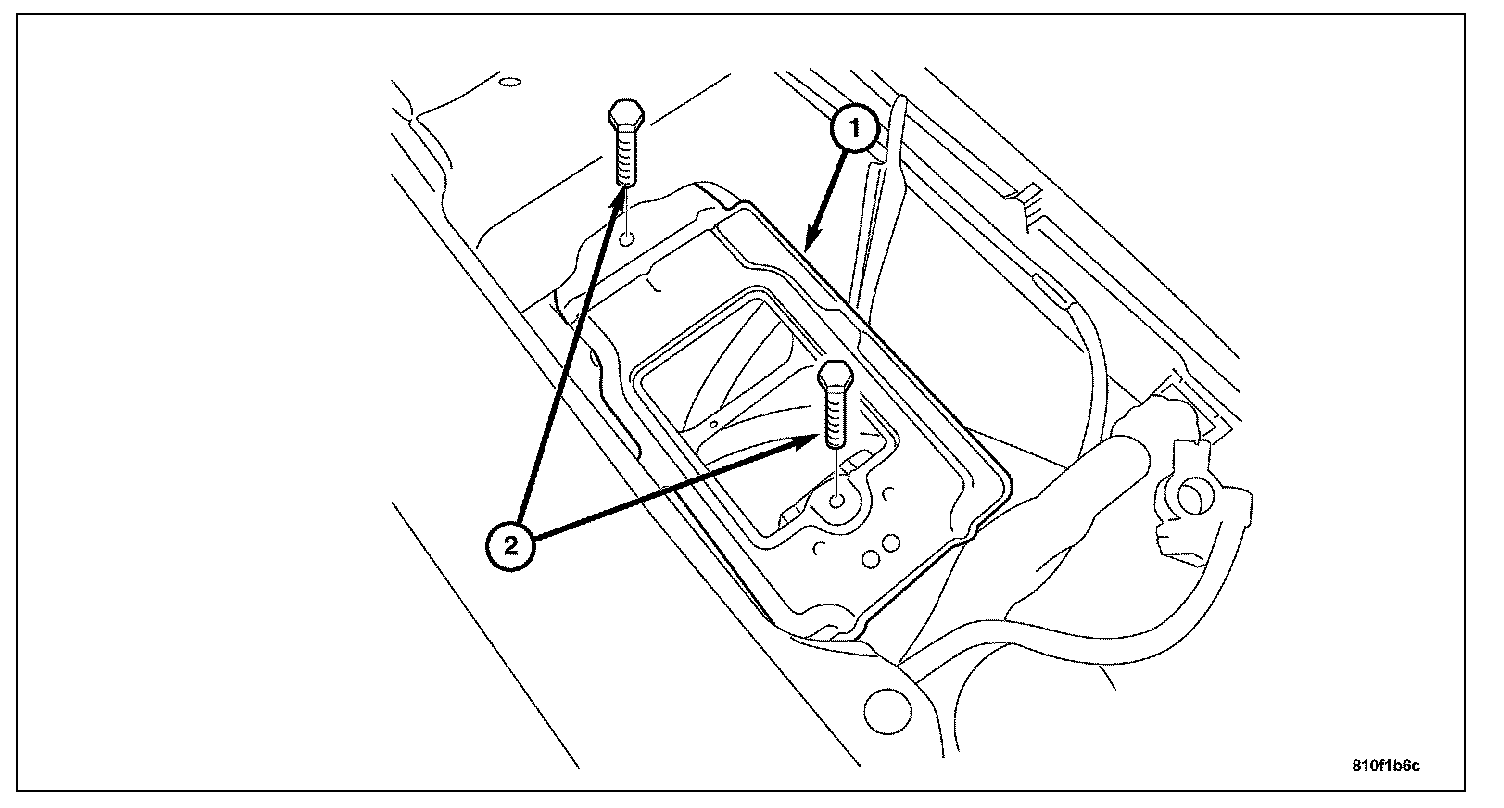 2. Install the battery tray (1) retaining bolts (2). Tighten the bolts to 15 N.m (11 ft. lbs.).