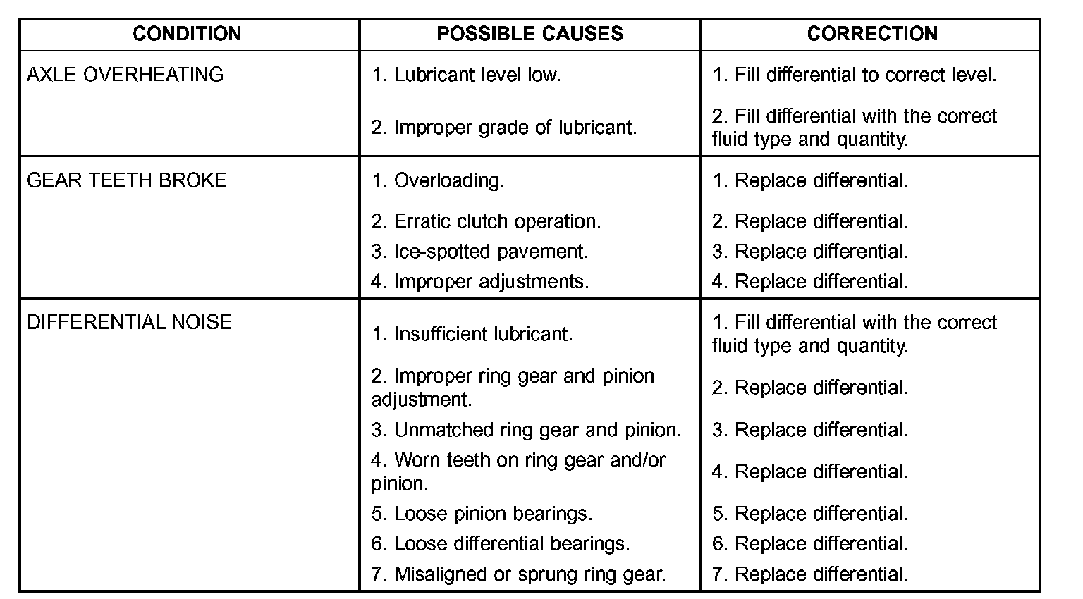 When road testing, first warm-up the axle fluid by driving the vehicle at least 5 miles and then accelerate the vehicle to the speed range where the noise is the greatest. Shift out-of-gear and coast through the peak-noise range. If the noise stops or changes greatly: