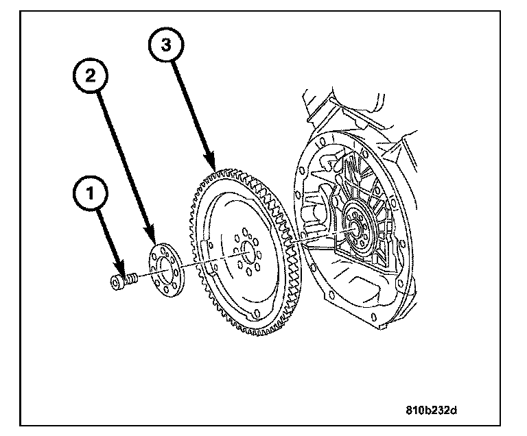 6. Remove the spacer (2) and the flywheel/flexplate (3).