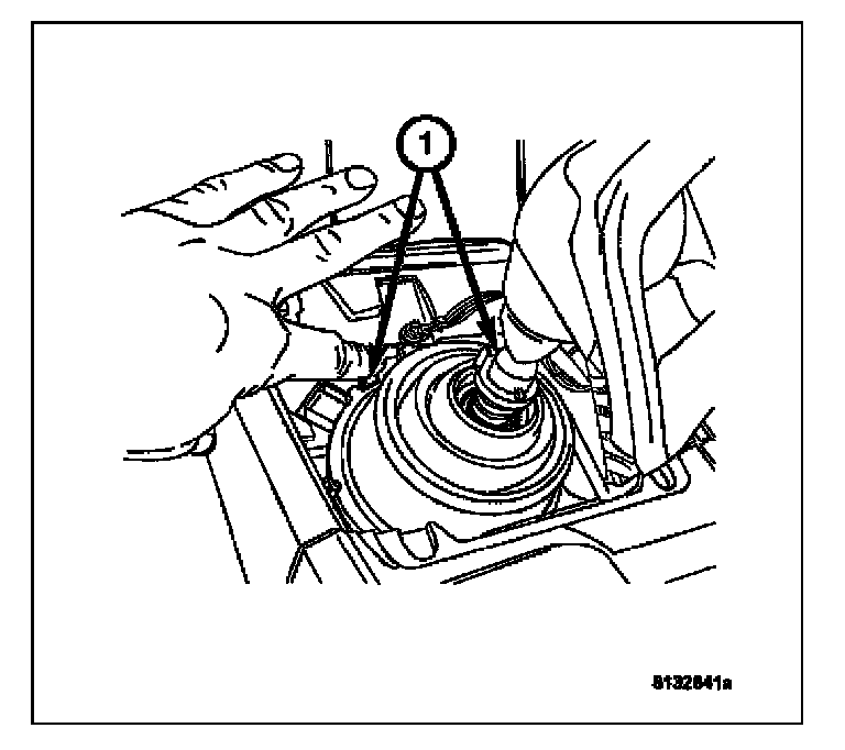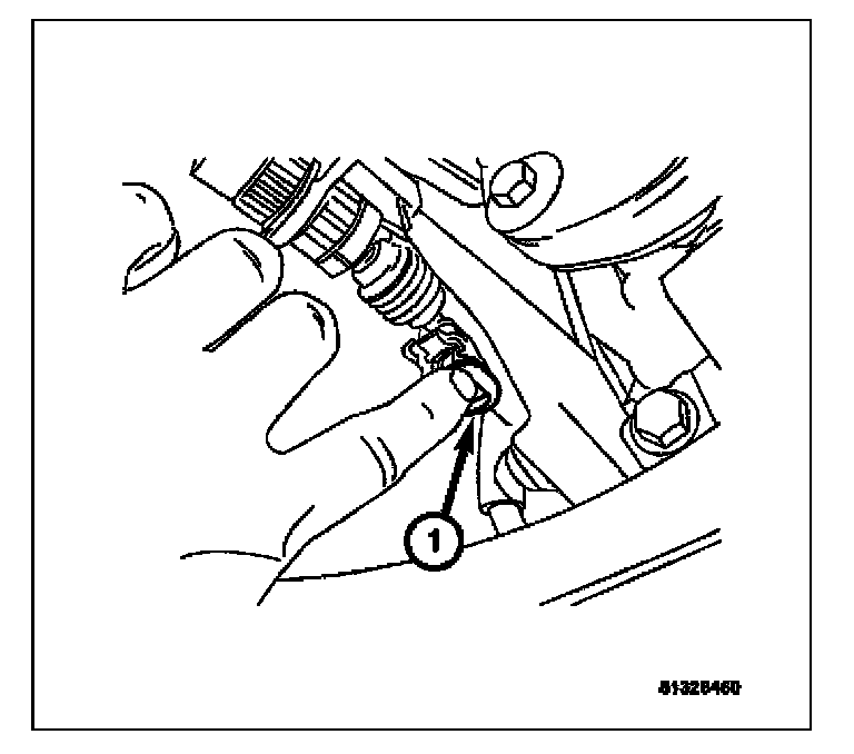 5. Depress the locking tabs (1) of the rubber shifter boot.