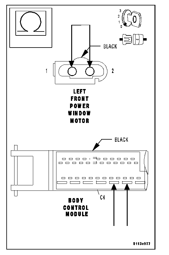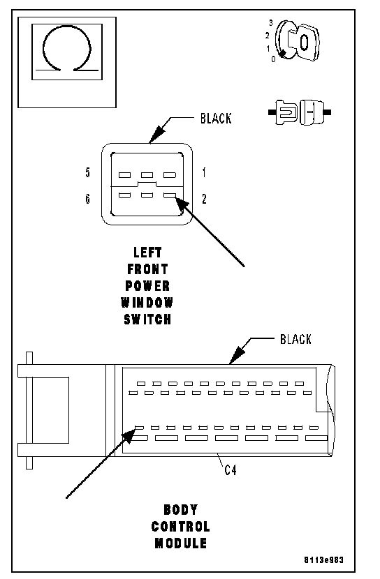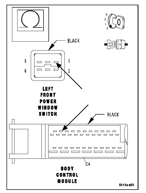 Measure the resistance of the Left Power Window Switch Sense circuit from the Left Front Power Window Switch harness connector to the BCM C4 harness connector.