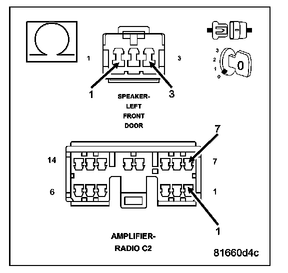 Measure the resistance between the (X153) Amplified Left Front Door Speaker (+) circuit, and the (X155) Amplified Left Front Door Speaker (-) circuit.