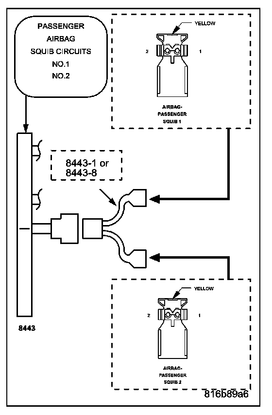 Connect the 8443 Load Tool to the Passenger Airbag Squib connector.