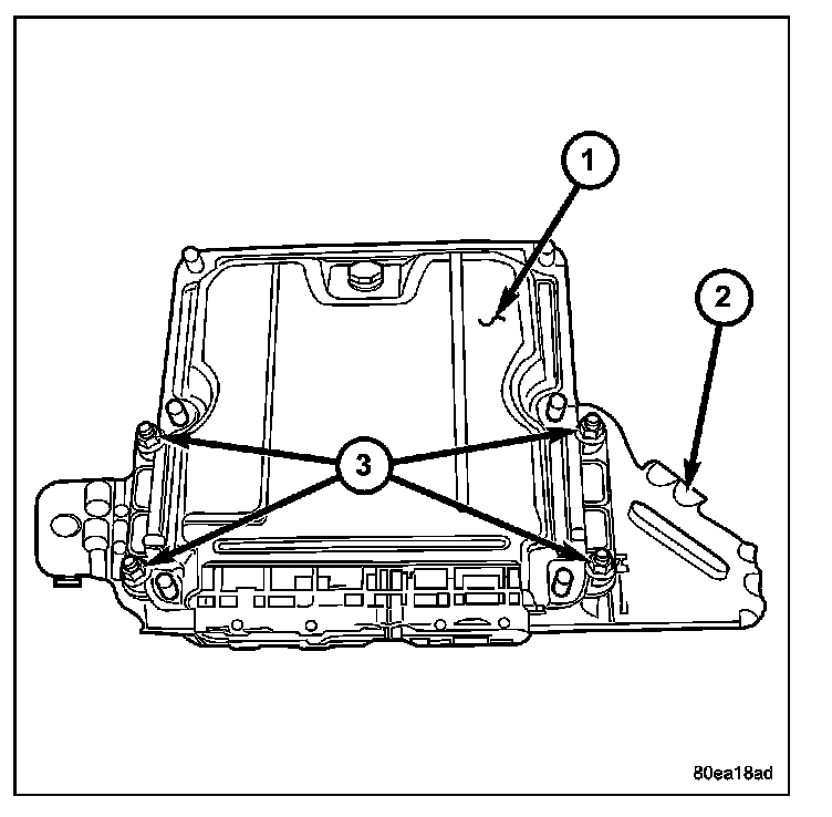 5. Remove ECM to bracket retaining nuts (3) and remove ECM (1) from bracket (2).